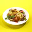 Put the pasta in boiling salted water and cook for about 10 minutes. Heat the oil in a large pan. Fry the minced meat for about 3 minutes. Clean and wash the zucchini and peppers and cut them into small pieces.