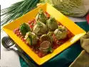Per portion (with 4 persons) approx. 2430 kJ/ 580 kcal. E 47 g/ F 28 g/ KH 28 g.Per serving (with 6 people) approx. 1970 kJ/ 470 kcal. E 43 g/ F 22 g/ KH 19 g