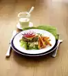 With the help of a flower shaped cookie cutter, cut out 4 flowers from each sandwich. Place a touch of cream cheese in the centre and then add a round of cream salmon and then the small circles of salmon. Put a stick in each flower.