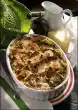 Season to taste with salt, pepper and nutmeg. Add mashed potatoes to the kale. Spread 20 g fat in flakes on top. Bake in the preheated oven (electric cooker: 200 °C/ convection oven: 175 °C/ gas: level 3) for about 10 minutes. Peel 1 onion and cut into rings. Heat oil in a pan and brown the onion rings in it. Place the onion rings on the kale casserole and serve