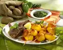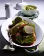 Wash the potatoes and boil in water for 15-20 minutes. Then rinse with cold water and peel. In the meantime, clean the savoy cabbage, cut into slices and cut into fine strips up to the stalk. Wash the savoy cabbage and drain well. Melt 1 tablespoon of fat. Cook the savoy cabbage for approx. 5 minutes on a low heat, turning.