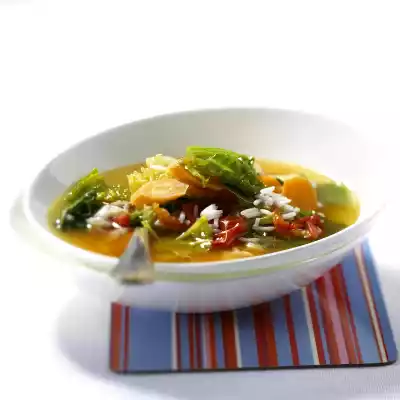 Season with salt and pepper. Add tomatoes and stock. Simmer covered for about 30 minutes. Season with salt and pepper.