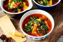 Stir the rice and beans into the minestrone and continue cooking for about 5 minutes. Wash herbs, shake dry, pluck off leaves and chop finely. Season stew with salt, pepper and chilli. Stir in the herbs. Arrange minestrone.