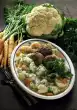Blanch 12 long chive stalks briefly in hot cabbage water and drain. Spread out the savoy cabbage leaves. Place the vegetable mince filling on the middle of the leaves. Fold everything over the filling to form small (approx. 5x5 cm) packages.