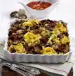 Roughly chop the almonds. Grate butter cheese, melt half in the sauce. Season to taste and pour over the rolls. Sprinkle with rest of cheese and almonds. Bake at the same temperature for 20-25 minutes. Serving with: Boiled potatoes