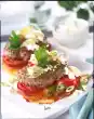 Skip the bacon in a large roasting pan, take it out. Fry roulades in hot bacon fat all around, take out. Add oil to the hot frying fat. Steam the cabbage strips for about 5 minutes while turning, season with salt and pepper and remove. Add onions to the hot frying fat, fry for about 1 minute, turning. Stir in tomato paste and sweat it. Deglaze with broth, bring to the boil, add bacon, season with salt, pepper and sugar. Layer the roulades in a large casserole dish, pour the stock over them, cover with aluminium foil and braise in a preheated oven (electric range: 175 °C/ convection oven: 150 °C/ gas: level 2) for 45-50 minutes