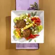 Heat 1 tsp. oil. Fry the meatball for about 6 minutes on both sides until golden brown. Take out. Dissolve the meat with 2 tablespoons of water and add to the vegetables. Stir the sour cream into the vegetables and serve with the meatball