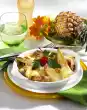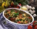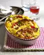 Clean and wash the savoy cabbage, cut into wide slices and blanch in boiling salted water for about 10 minutes. In the meantime heat oil and fry minced meat for about 2 minutes, turning it over. Season with salt and pepper. Fill the tomatoes into the gratin dish (approx. 30 cm Ø). Peel garlic, press it through the garlic press or chop it finely and mix it into the tomatoes. Wash the thyme. Add leaves, except for a few for sprinkling. Place the savoy cabbage slices on the tomatoes in a star shape. Add the chopped leaves. Mix egg yolks, sour cream, cheese and Gouda and spread on the casserole. Bake in the preheated oven (electric: 200 °C/ gas: level 3) for 10-15 minutes. Serve sprinkled with thyme