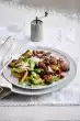 Meanwhile, prepare the pasta in boiling salted water according to the instructions on the packet. Drain the pasta, add to the vegetables in the pan and season with salt and pepper. Cut the cress from the bed, put half of the cress in the pan. Serve the sour cream and remaining cress with the savoy cabbage noodles.
