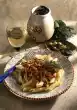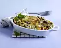 Spread 2 tablespoons of sauce in it. Place 3 sheets of lasagne on top. Spread the sauce one after the other, spread half of the savoy cabbage, cover with 3 sheets of lasagne, spread with sauce. Spread the salmon, season with salt and pepper, spread 3 lasagne sheets, the remaining savoy cabbage, sauce and last noodles. Finish with sauce. Grate cheese and sprinkle on top. Bake in the preheated oven (electric cooker: 175 °C/ convection oven: 150 °C/ gas: level 2) for about 40 minutes. Serve garnished with chervil