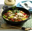 Quench with cold water. Peel skin. Cut tomatoes into quarters, remove seeds and dice. Cut the savoy cabbage roll into slices. Arrange on plates with potatoes and sauce. Sprinkle with diced tomatoes and cress