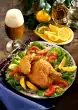 Peel and finely chop the onion. Heat 1 tablespoon of oil in a saucepan. Fry the onion in it. Add spinach and 75 ml water and heat for 7-9 minutes in a closed pot, season with salt and pepper.