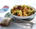 In the meantime, peel, wash and roughly dice the potatoes. Cook in salted water for about 20 minutes. Drain. Add milk and butter, warm up and mash everything finely. Season the puree with salt and nutmeg.