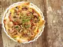 Clean and clean the mushrooms. Clean, wash and cut leek into rings. Grate cheese.