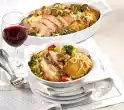 Wash the basil, chop finely. Drain the vegetables, collect the stock. Boil down with the cream over high heat for 5-8 minutes. Bind if necessary. Season to taste with salt, pepper and lemon juice. Add basil and vegetables. Serve everything. New potatoes taste good with it
