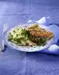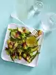 Clean, wash and drain the rocket well. Halve the avocado, remove the stone, peel the skin from the flesh and cut the flesh into pieces. Sprinkle with lemon juice. Mix rocket and avocado with the potatoes. Wash the flesh, dab dry and tap very flat on the work surface between two layers of cling film