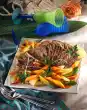 Mix cream, crème fraîche, light and dark sauce powder. Season with salt, pepper and soy sauce. Pour over the escalopes. Bake in the preheated oven (electric cooker: 200 °C/ convection oven: 175 °C/ gas: level 3) for 40-45 minutes. Tastes good with parsley rice