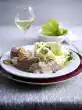 Add the mushrooms and onion to the hot oil and fry while turning. Season with salt, pepper and nutmeg and deglaze with stock, cream and sherry. Bring to the boil, cover and simmer for about 2 minutes. In the meantime, put the noodles in plenty of boiling salted water and boil for 9-10 minutes until they are bubbling. Put broccoli in little boiling salted water and simmer covered for 7-8 minutes. Add meat to the mushroom sauce, stir in the sauce thickener and bring to the boil again briefly. Season escalope pan with salt, pepper and sherry. Drain the noodles, rinse briefly under cold water and allow to drain. Also drain broccoli. Lightly roast the almonds in a pan without fat.
