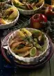Cut the schnitzel into large pieces. Season with salt and pepper. Fry them in a frying pan with hot oil. Deglaze with stock and wine, cover and stew for about 20 minutes. Clean and wash the carrots and zucchini.