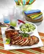 Place the escalopes close together on an oiled fat pan. Sprinkle with parmesan and cover with slices of ham. Pour sauce evenly over the escalopes. Braise in the preheated oven (electric cooker: 175 °C/circulating air: 150 °C/gas: level 2) for about 1 1/2 hours