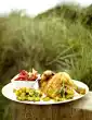 Prepare rice in boiling salted water according to package instructions. In the meantime wash chicken fillets, dab dry and cut through 2 x horizontally with a sharp knife. If necessary, flatten the slices and season with pepper.