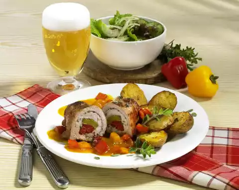 If necessary, thicken the paprika sauce and season to taste. Arrange roulades with sauce and potatoes.