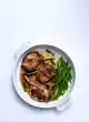 Wash, peel and cut the potatoes into pieces. Cook in boiling salted water for about 20 minutes. Brush cutlets with mustard and cover each with 1 slice of ham. Roll them up and pin them with small wooden skewers. Season with salt and pepper. Wash the herbs and dab dry. Chop the parsley, cut the chives into small rolls, put some aside for garnishing