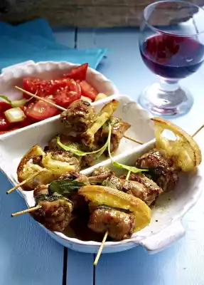 Skewer 2 meat rolls, 1 slice of bread and the remaining sage leaves alternately, place on a baking tray. Drip oil over it and pour on approx. 100 ml water. Bake in a preheated oven (electric cooker: 200 °C/circulating air: 175 °C/gas: level 3) for approx. 20 minutes.