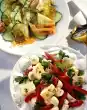 Wash and slice the cucumber and tomatoes. Cut onion into rings. Mix vinegar, 1 tablespoon water, salt and pepper. Add 1 teaspoon of oil. Mix marinade, cucumber, onion and tomatoes