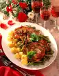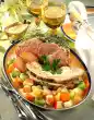 Season with salt and pepper. Spread the toast with fat. Place meat and pineapple on top. Cover with 6 cheese strips each in a grid pattern. Put toast slices on a baking tray. Bake in a preheated oven (electric cooker: 200 °C/ convection oven: 175 °C/ gas: level 3) until the cheese has melted.
