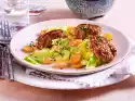 Fry the peppers in hot frying fat for about 8 minutes. Stir in spring onions and corn, season with salt and cayenne pepper. Pour on gypsy sauce and approx. 150 ml water, bring to the boil and simmer open for approx. 2 minutes. Stir parsley into the sauce.