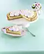 Sprinkle with chocolate curls and pistachios and serve decorated with melissa. Makes about 12 pieces.