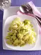 Clean, wash, drain and quarter the Brussels sprouts. Peel onions and cut into cubes. Heat the oil in a pan and fry the onions and Brussels sprouts lightly. Deglaze with stock, bring to the boil and braise covered for 8-10 minutes.