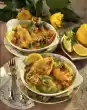 Add tomato paste and sauté briefly. Deglaze with stock and cream, bring to the boil and simmer for 5 minutes. Add meat and potato noodles and warm up for 2 minutes. Season to taste with salt, pepper and marjoram. Serve with crème fraîche and marjoram