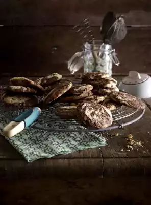 Alternate spoonfuls of dark and light dough in a bowl. Use a teaspoon to place small heaps on about 5 baking trays lined with baking paper. Keep your distance, as the biscuits will run apart. Bake one after the other in a preheated oven (electric cooker: 175 °C/ convection oven: 150 °C/ gas: level 2) for 10-12 minutes. Allow to cool briefly, then place on a cake rack and allow to cool