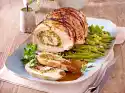 When the meat is almost cooked, prepare polenta: In a large saucepan, bring 1 litre of water to the boil and salt lightly. Add polenta and cook for about 5 minutes while stirring until it thickens and is smooth.