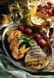 Sprinkle with caviar. Cut bread slices into 4 triangles. Arrange on a plate and serve garnished with dill and parsley as desired.