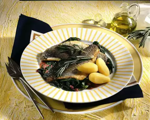 Arrange the spinach on plates and arrange the fillets on top. Serve with boiled potatoes, e.g. Bamberger croissants.