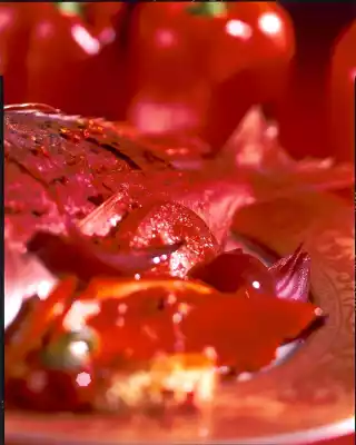 Clean the chilli pepper, cut lengthwise, remove seeds, wash and cut into fine rings. Mix with pink berries and spread on fish and vegetables. Cook in the preheated oven (electric cooker: 200 °C/ gas: level 3) for 30 to 40 minutes and serve.