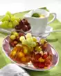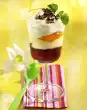 Carve the vanilla pod, scrape out the pulp. Put 3/4 of the berries, 50 g sugar, vanilla pulp and pod in a pot and bring to the boil. Let simmer for about 5 minutes. Remove the pod and pass the berry sauce through a sieve. Stir in remaining berries. Dip the box form briefly in hot water, turn it over on a board and cut it into 8 slices. Serve with the berry sauce and decorate with lemon balm