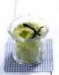 Wash the apple, quarter it, core it. Cut half into columns, rest into cubes. Sprinkle with lemon juice. Steam in the sauce for about 2 minutes. Flavour with cinnamon. Turn over flummery. Serve with apple sauce. Decorate with mint if desired.