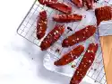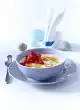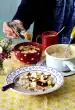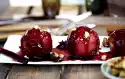 Meanwhile boil up the nectar and 2 tablespoons of sugar. Stir starch and 2 tablespoons cold water until smooth. Bind the nectar with the mixed starch, simmer for 2-3 minutes, remove from heat. Stir in frozen raspberries.