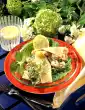 Soak gelatine in cold water. Bring milk, fat and 60 g sugar to the boil. Stir in semolina and let it simmer for about 2 minutes at low heat while stirring. Squeeze the gelatine well and dissolve in the hot semolina. Stir in lemon peel. Pour the mixture into a bowl, place in a cold water bath and let it cool down to room temperature while stirring.