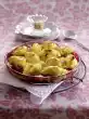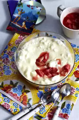 In the meantime, separate the egg. Beat the egg white until stiff, add 1 tablespoon of sugar and salt. Whisk egg yolk with cream. Stir into the semolina. Fold in the beaten egg white. Fill into a bowl and let it cool down
