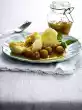 Clean, wash and cut the rhubarb into pieces. Put them into a pot, sprinkle with 100 g sugar and let them stand for about 15 minutes. Add rhubarb nectar and vanilla sugar and bring to the boil. Simmer covered for about 2 minutes. Stir starch with 3 tbsp. water until smooth. Stir the starch into the compote and simmer for about 1 minute, stirring continuously. Let it cool down