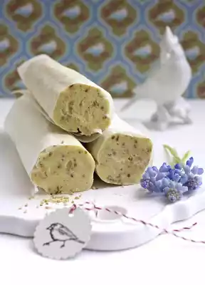 Roast sesame seeds in a pan without fat until golden brown, remove and let cool. Mix butter, sesame and honey until smooth. Season to taste with approx. 1⁄2 tsp salt and 1⁄2 tsp cayenne pepper. Form into a roll (3-4 cm Ø) on a piece of sandwich paper.