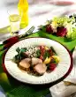 Turn meat in sesame seeds and fry carefully in the pan for about 4 minutes until golden brown all around. Wash the coriander, dab dry, put 4 stems aside for garnishing, chop the rest coarsely. Drain the meat on kitchen paper and fold into the noodles with the coriander. Season with salt, pepper and chilli sauce. Arrange everything on preheated plates and garnish with the remaining coriander