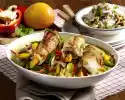 Cook the pasta in boiling salted water according to the instructions on the packet. In the meantime, quarter the peppers, remove seeds, wash and cut into strips. Clean and peel the carrots, cut them in half lengthwise and cut them diagonally into pieces.