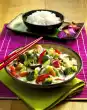 Add the Asian sauce, mushrooms and cashew nuts, heat briefly. Season to taste with salt and Sambal Oelek. Serve garnished with chilli. Serve with extra rice.
