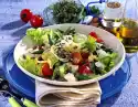 Pluck the thyme and rosemary leaves from the stalks. Mix vinegar, herbs, salt and pepper and add oil. Arrange beans, tomatoes, feta cheese and olives on a plate. Add the herb vinaigrette.